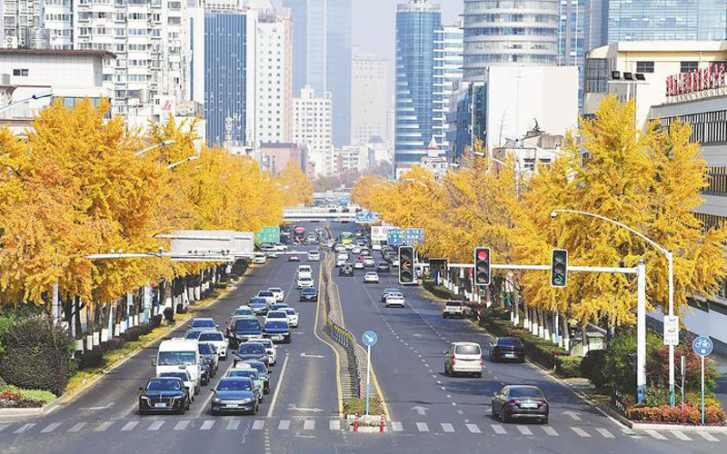 12月1日,徽州大道化身“金色长廊”。道路两旁的银杏树身披耀眼金装,扇形叶片在阳光下熠熠生辉。往来车辆穿梭其间,仿佛行驶在流动的油画中。合肥日报-合新闻记者 郭如琦 摄