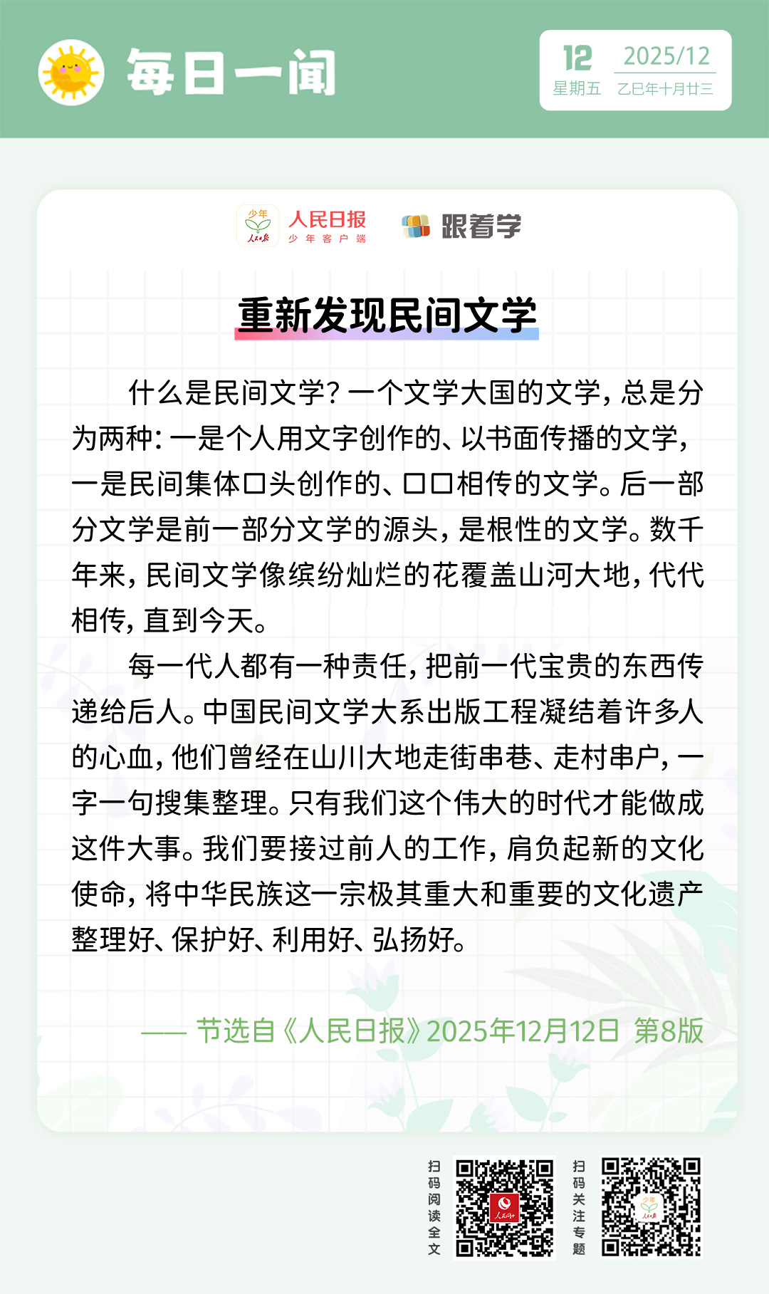 每日一闻丨重新发现民间文学详细介绍: