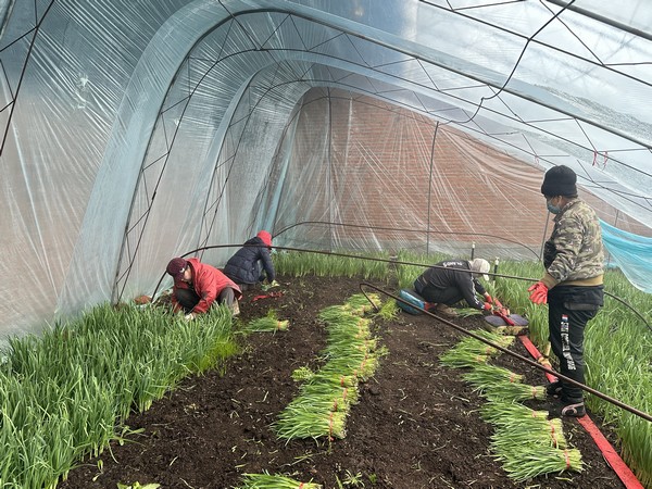 棚室韭菜产业的蓬勃发展,始于村民们的自发探索。近年来,可观的收益激发了全村的种植热情,村民们自发形成互帮互助的协作模式,从翻土、搭棚到栽种、管护,再到收割、销售,各环节逐步实现统一规范操作。这种“邻里互助、共建共享”的方式,有效降低了生产成本,提升了技术水平,迅速扩大了产业规模。