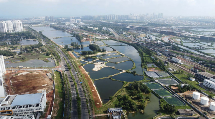 回望建设历程,是一场与极端条件抗争、与技术极限较量、与时间赛跑的艰苦鏖战。项目原址为一片由上百个深浅不一鱼塘构成的沼泽,其下是深达1.5至2米的流塑性淤泥层,地基承载力几乎为零,堪比在“豆腐脑”上搞建设。为攻克地质难题,项目团队率先展开“乾坤大挪移”,抽排近200万立方米积水、回填160万立方米土方,让泥泞沼泽初见雏形。针对软土地基成桩难题,创新应用复杂地质条件下等芯水泥土劲性复合桩施工技术,成功解决了5000多根桩基在软土地质中的成桩质量和效率难题,为后续工程打下了“金钟罩”般的绿色地基。