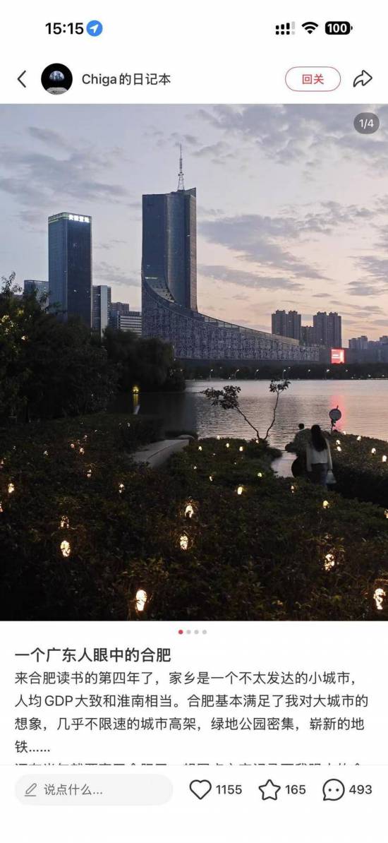 “密集的绿地公园、崭新的地铁,还有散落在街角的主理人小店。”不久前,一篇题为《一个广东人眼中的合肥》的帖子在社交平台上收获了上千点赞与转发。