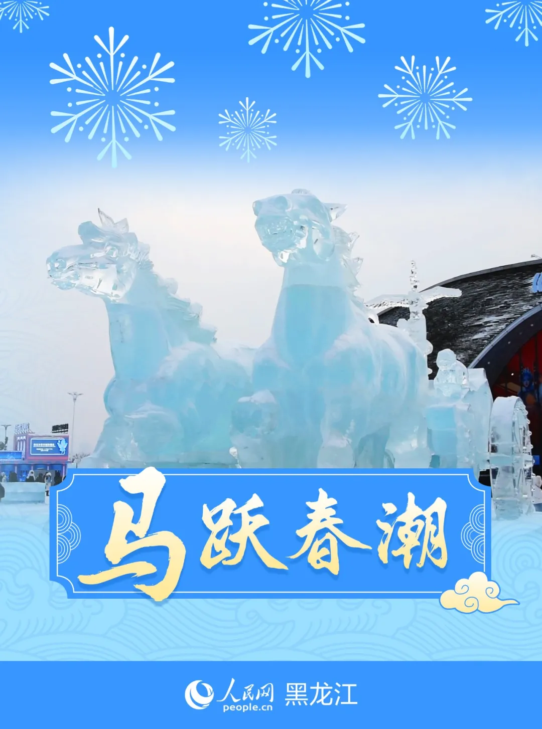 冰雕雪雕的骏马踏雪而来