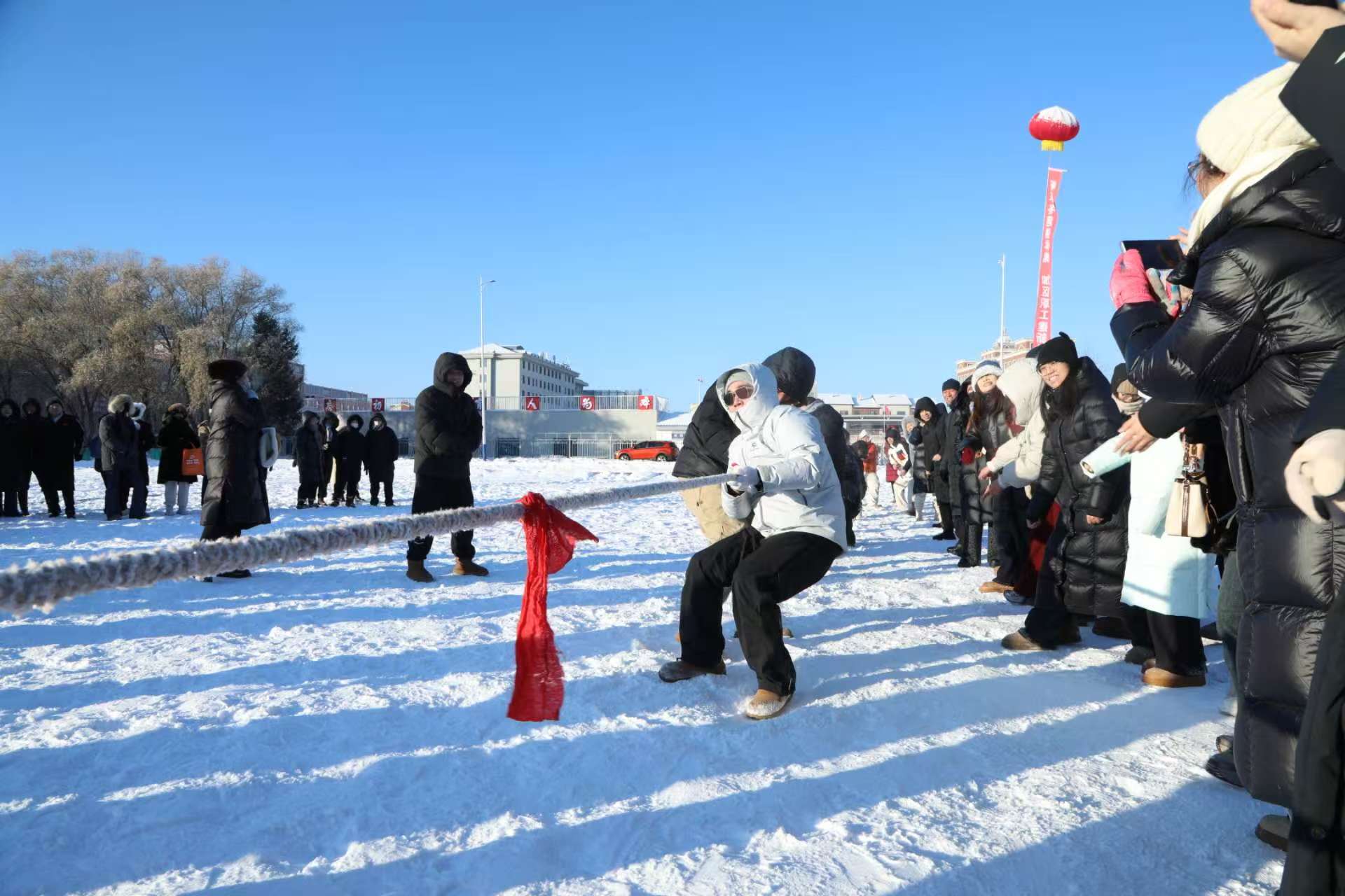 本次“冬趣工运汇”吸引了全区40余家机关事业单位、企业的千余名职工踊跃参与,活动共设置雪地拔河、雪圈接力、职工雪地舞等五个特色项目,兼具竞技性与趣味性。赛场氛围热烈,职工们在雪地上勾勒出欢乐的冰雪运动画卷,现场口号声、呐喊声此起彼伏,阵阵欢呼声与笑语声传遍整个赛场。