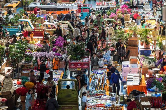 云南昆明,亚洲最大的鲜切花交易市场斗南花市里,每天都上演着热气腾腾的迎春“赶大集”场景。逛花市、买鲜花,已成为云南颇具特色的新春仪式,也让斗南花市成为春节期间热门的城市消费场景。