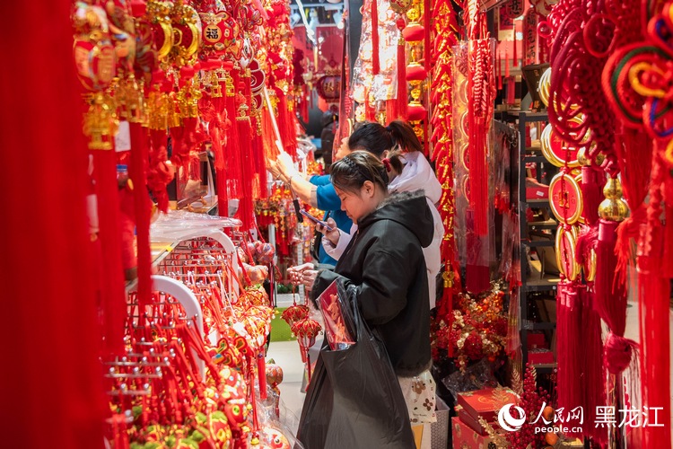 走进哈尔滨道里区透笼轻工批发市场,红彤彤的春联、福字挂满摊位,精致的红灯笼、中国结琳琅满目。“今年我特意来买个大的中国结,挂在客厅里喜庆!”正在挑选饰品的市民李女士笑着说。商户王老板忙得不亦乐乎:“这几天生意特别好,销量比平时翻了好几倍!”