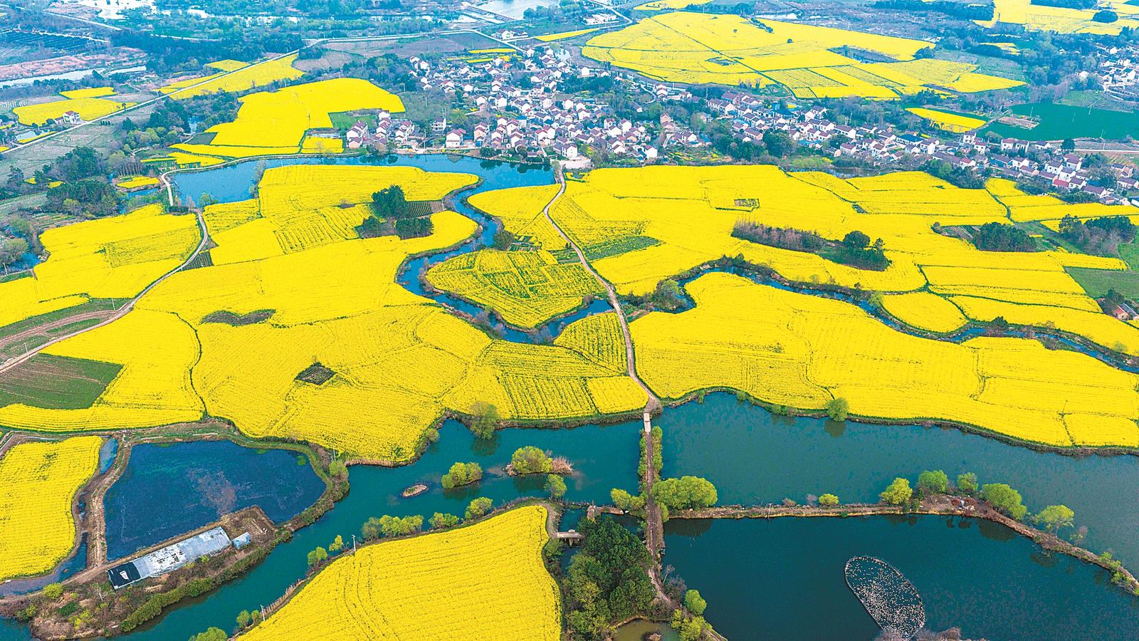 3月30日,郎溪县十字镇新和村千亩油菜花绽放。(李晓红)