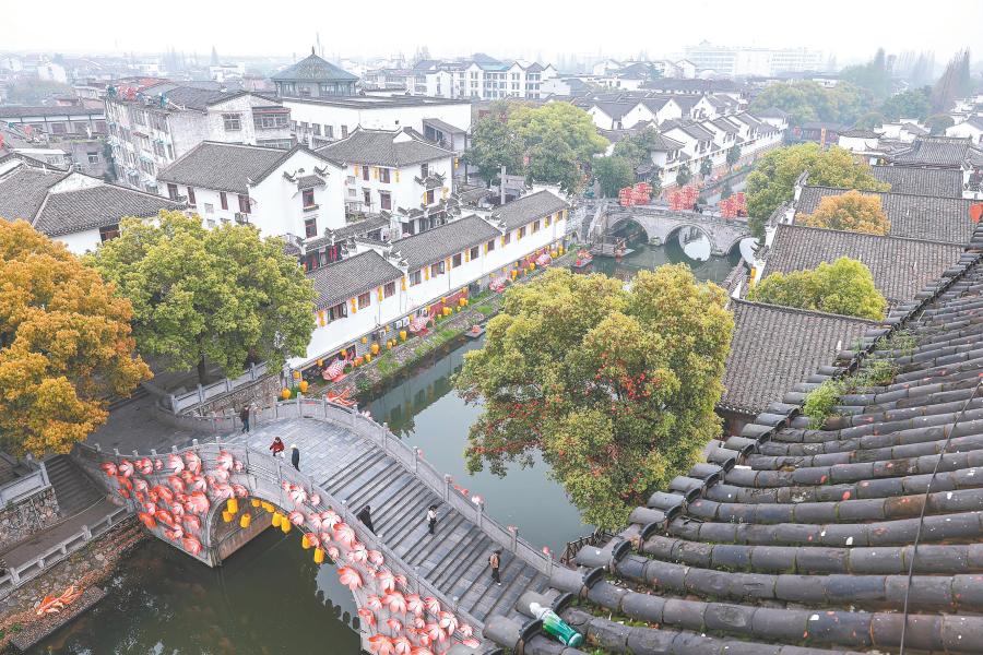 沿着古街巷往前走,酒香、糕香、酱菜香交织在一起。古法米酒坊、茶酥店、酱菜铺依次排开,游客们边走边尝,不少人特意买上几样糕点、几罐酱菜,说是要把水乡的滋味带回家。