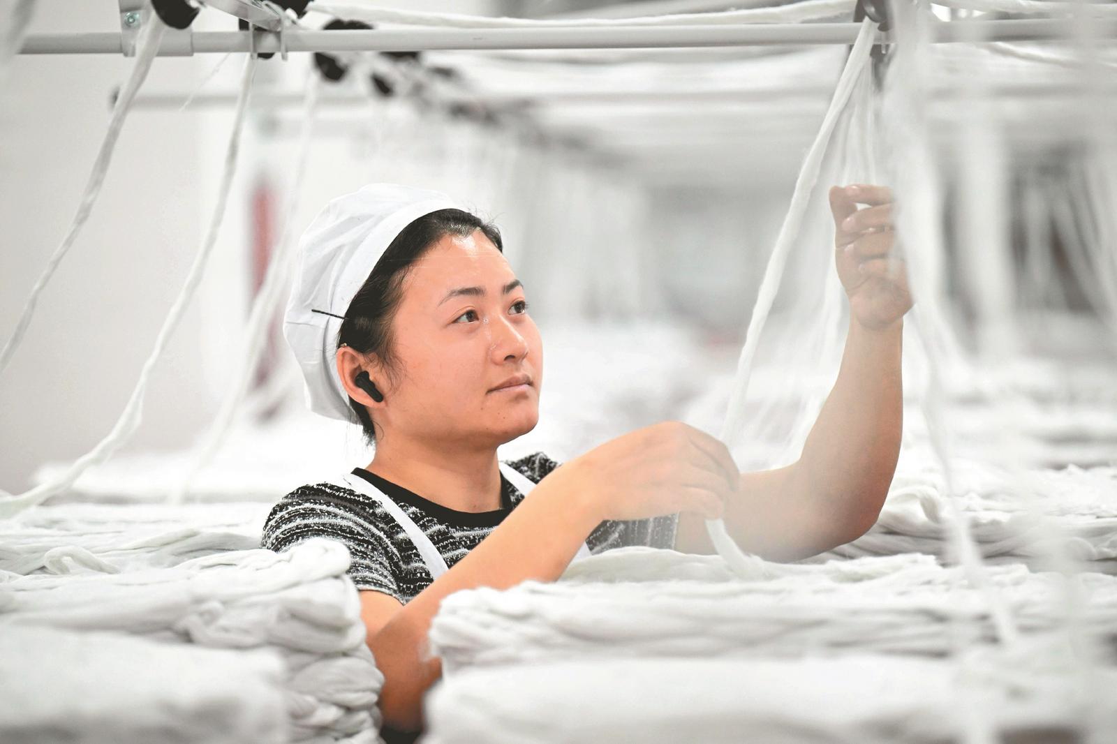 近日,在位于亳州市利辛县工业园区的安徽翰联色纺股份有限公司内,纺织工人在生产车间里赶制订单。目前,该县轻纺服饰类企业近600家,2025年全县轻纺服饰产业实现总产值172.6亿元。本报通讯员 刘勤利 耿伟伦 摄
