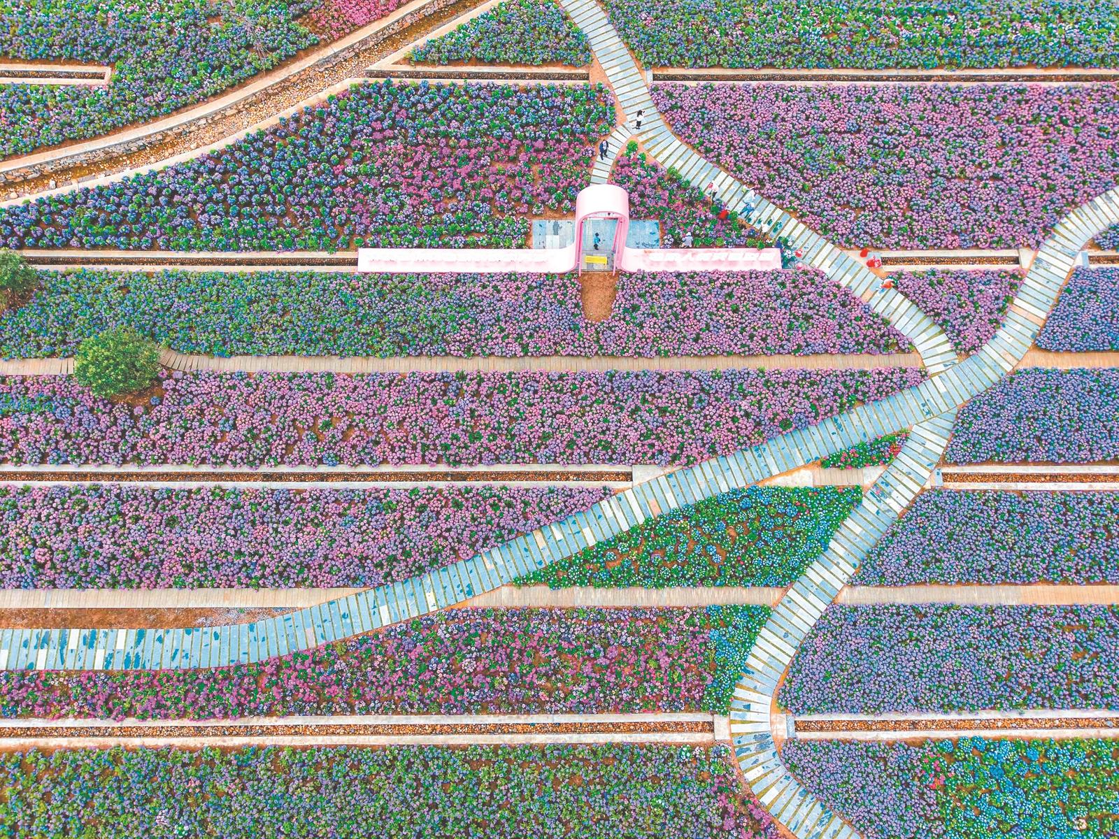 4月12日,铜陵市义安区凤凰山风景区,绣球花相继盛开,美不胜收,吸引众多游客前来赏花拍照。本报通讯员 刘伯顺 摄