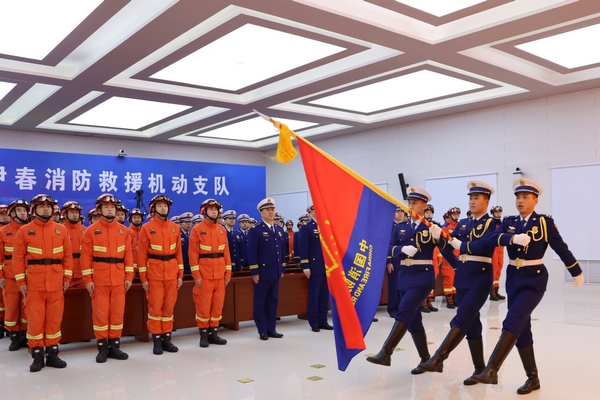 仪式现场,红绸缓缓落下,“伊春消防救援机动支队”牌匾崭新亮相。这一举措,不仅是该支队深入贯彻落实国家综合性消防救援队伍整合改革部署、积极响应总队职能重塑要求的具体实践,更是区域应急救援力量体系建设的关键突破,标志着覆盖伊春、鹤岗、佳木斯、双鸭山、鸡西、七台河六地市的应急救援队伍,在向“全灾种、大应急”转型发展道路上迈出坚实步伐,为区域防灾减灾救灾体系建设注入新的活力与动能。