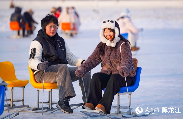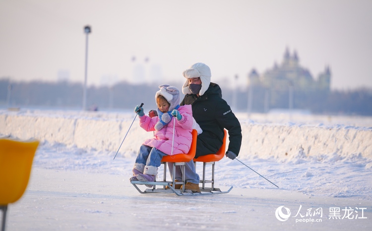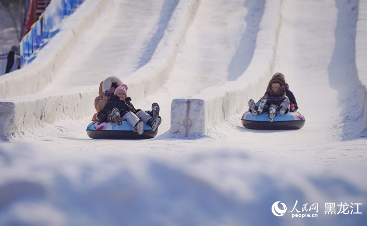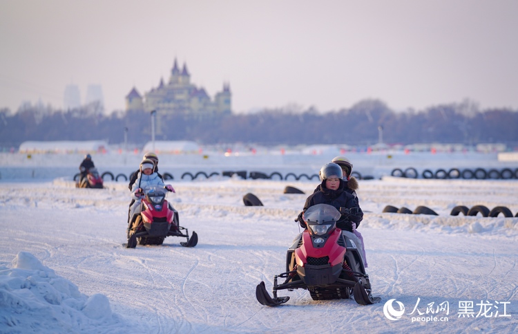 而在松花江冰雪嘉年华园区,则是另一番热闹景象。雪圈道上传来阵阵尖叫,冰上自行车的铃声此起彼伏,游客们驾驶着冰雪四驱车在指定区域内体验速度与激情。市民张先生一家三口正玩得不亦乐乎,他感慨道:“这样的亲子时光太珍贵了。冰雪运动让我们更深刻地感受到了‘冰城’的魅力,也让我们在这个冬天有了不一样的收获。”