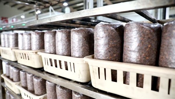 与以往不同的是,曾经需要十几名工人围着转的菌袋生产工序,如今只需要几个人在屏幕前轻点按钮,就能完成菌包的批量生产。去年秋季,该企业引进了菌包智能自动化生产线,生产效率大幅提升,装袋速度快、连续性强,每小时可生产菌包2000袋左右,日上架19万—20万袋,有效缩短菌包生产周期,满足规模化、集约化生产需求。菌包密实度一致、透气性均衡,从源头减少杂菌污染,提高成品率和后期出耳整齐度。