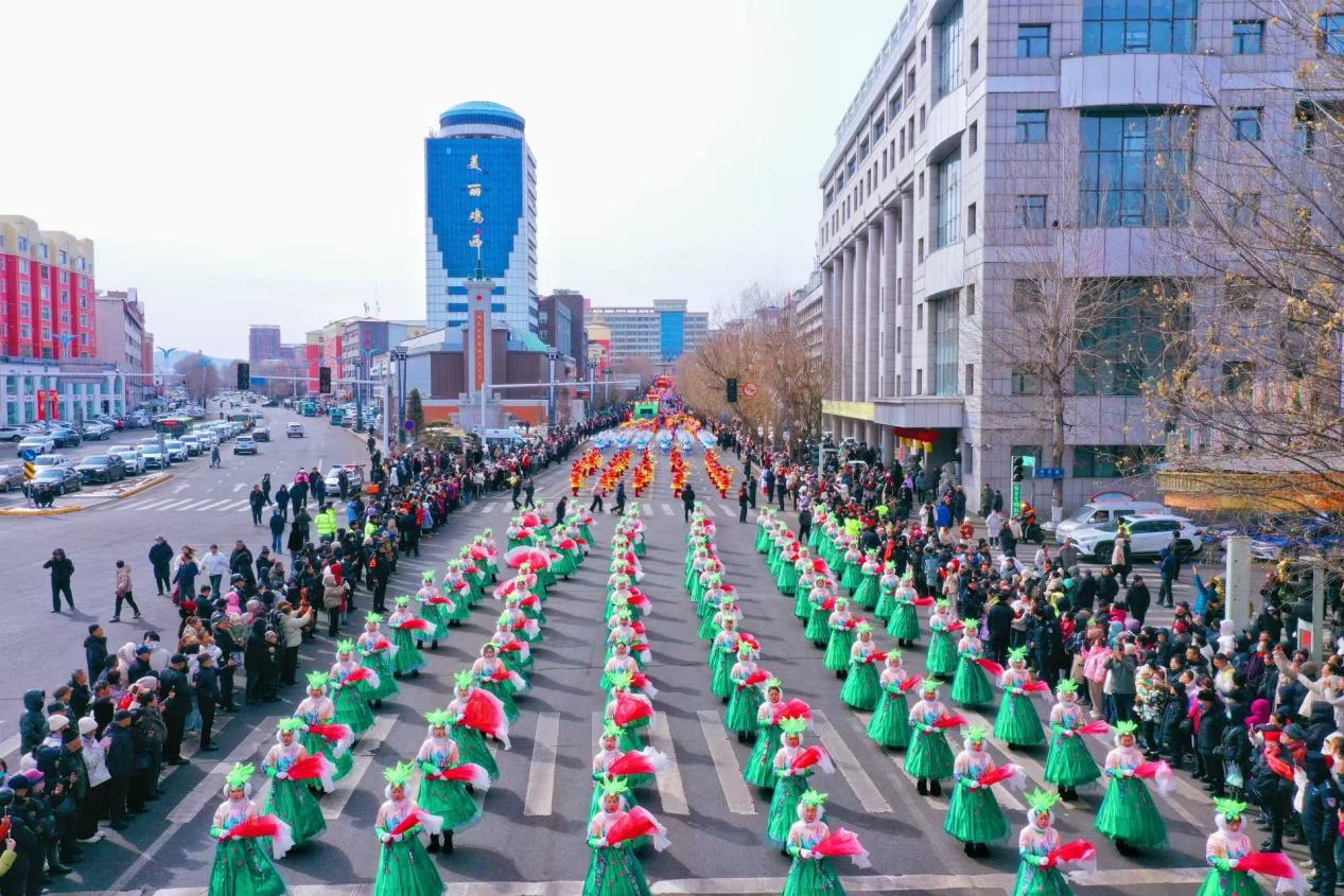 活动当天,来自鸡西市三县六区的9支秧歌队伍和18辆主题花车沿街巡游,彩扇翻飞、腰鼓齐鸣,各支秧歌队身着鲜艳服饰,踏着欢快鼓点依次登场,展现东北大秧歌的独特魅力。随后融合工业、农林、城建、文旅、民生、商务六个行业发展的花车队伍,沿鸡西市区主要街道巡游,花车伴随着秧歌队的行进表演,让活动来到百姓家门口,将喜庆氛围传递至城市每个角落。