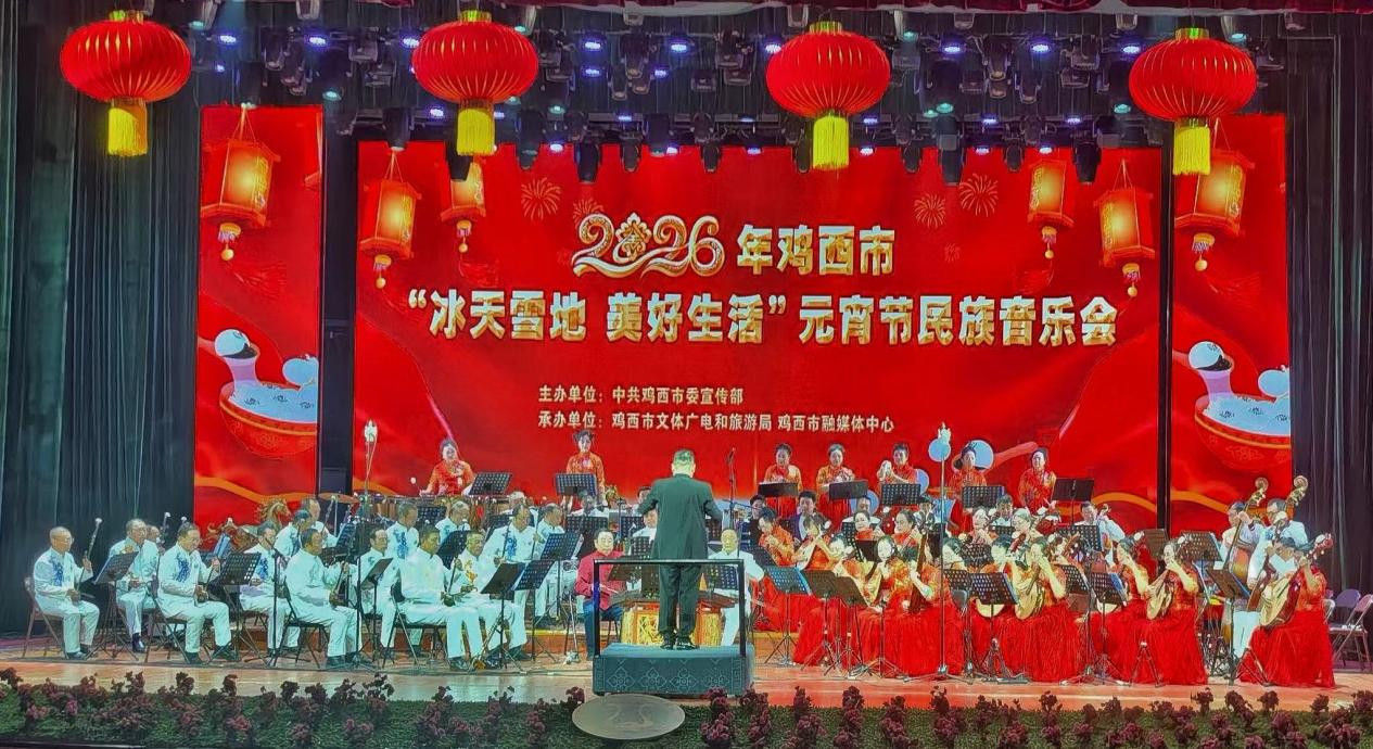 非遗灯谜添雅趣,民乐悠扬庆元宵。当日下午,非遗展示、猜灯谜与民族音乐会在鸡西大剧院上演,再次掀起活动高潮。在非遗展示区,传承人现场演示非遗技艺;猜灯谜区域一条条妙趣横生的谜语引得男女老少争相竞猜,欢声笑语中洋溢着智慧与乐趣。随后,“冰天雪地 美好生活”元宵节民族音乐会在器乐表演《欢庆》中也拉开了帷幕,唢呐二重奏《喜庆丰收年》、新民乐《粉墨人生》、经典曲目《腾飞鸡西》《战马奔腾》等节目陆续开演,传统与现代交织,为市民带来沉浸式的文化体验。