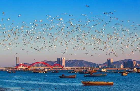 进入小雪节气,海风更添寒意。在烟台海阳南部海域37公里处,百余台百米高的白色风机迎风转动,徐徐海风由此转变成清洁电能,为千家万户送去海上绿电。