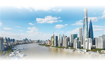 在上海黄浦区南外滩高处俯瞰黄浦江两岸风景。 |