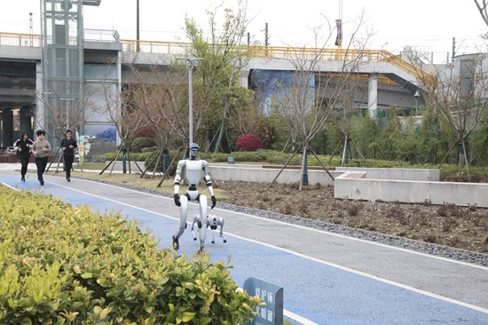 蕰藻浜畔,机器人“庙小福”优雅地挥动手臂向路人问好,灵动的机器狗“小共”则不时停下脚步,与这里散步的市民游客互动。机器人与水岸风景融为一体,让这个沪上小镇宜居宜业的发展图景有了更加具象化的表达。