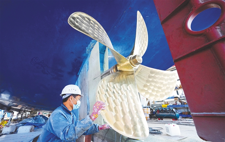 近日,临高金牌港开发区,海南临高海荃新能源游艇制造有限公司生产车间内,工人在加紧建造船舶。作为海南自贸港重点园区,金牌港开发区海洋装备(游艇)制造产业发展势头强劲,目前已落地15个项目。随着产业链不断完善、市场需求持续增长,海洋装备制造产业集聚效应逐步显现,成为临高海洋经济高质量发展的新亮点。海南日报全媒体记者 陈元才 通讯员 刘彬宇 图/文