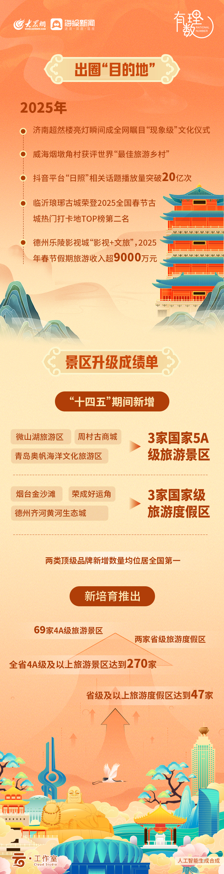 但山东远不止于此。它是泰山之巅的日出,是孔孟之道的回响,是淄博烧烤的烟火,是青岛啤酒的泡沫,是潍坊风筝的高度,是“好客”二字刻进DNA里的温度。来山东的理由,又何止5678个?