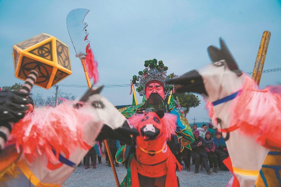 2月3日,宣城市郎溪县新发镇双桥村上演精彩非遗下阳小马灯。