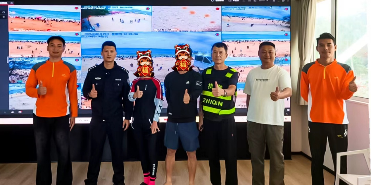 2月19日14时53分许,石梅湾海岸派出所接110指令称:2名游客在海上划桨板游玩时,体力透支,无法划回岸边,此时风浪逐渐变大,桨板随时可能会侧翻,需要救助。接到求助后,派出所民警林明光和辅警陈礼坤迅速出警,同时火速联系消防、华润救援队、石梅湾游艇会、石梅村党支部应急救援队等力量,按照派出所春节安保服务联动机制,迅速通报警情,联系各方力量迅速开展救助。同时协调海南天鲸航空旅游有限公司石梅湾直升机,搭乘民警开展空中搜寻,并实时将空中发现的情况,反馈各方救援人员,指挥海上救援摩托艇有针对性地开展搜寻。