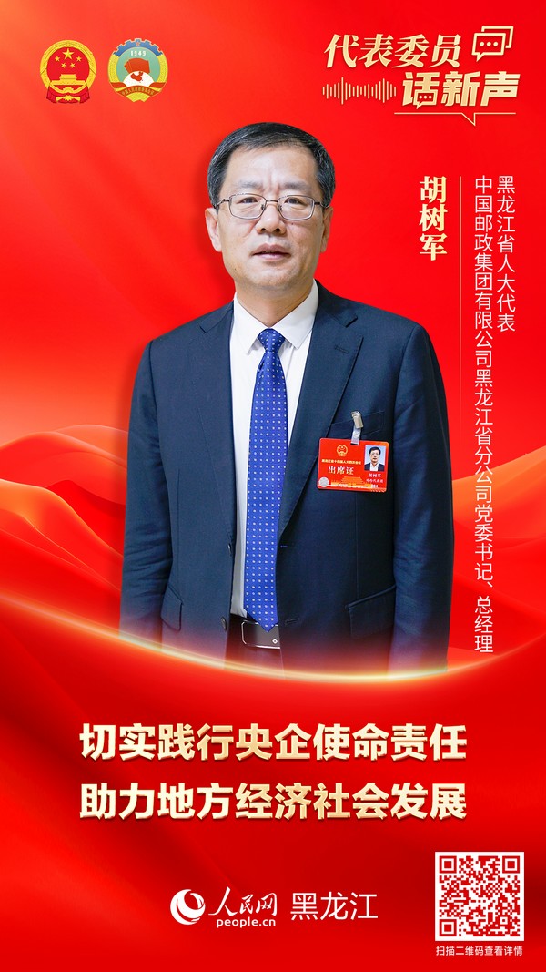 人民网哈尔滨2月2日电 (记者尚城、苏靖刚)“今年的政府工作报告是一份体现政治担当、顺应人民意愿的报告,为我们企业高质量发展注入了坚定信心。中国邮政黑龙江分公司将坚决履行央企经济责任、社会责任、政治责任,在服务地方经济社会发展中作出新贡献。”黑龙江省人大代表,中国邮政集团有限公司黑龙江省分公司党委书记、总经理胡树军说。