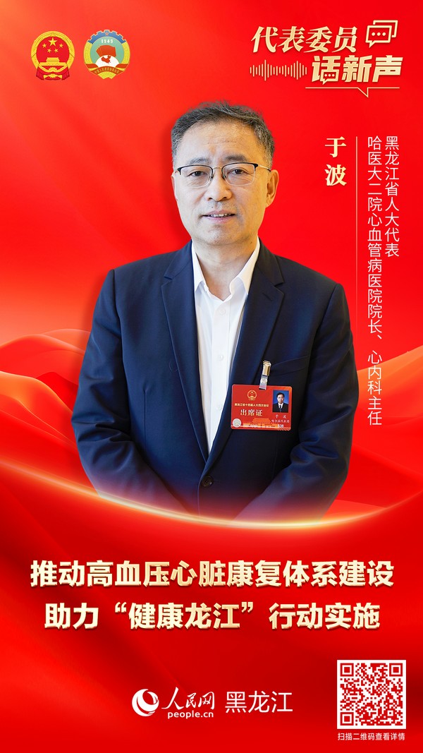 人民网哈尔滨2月2日电 (记者尚城、苏靖刚)“今年的政府工作报告中我最关注的是关于提高人均预期寿命方面的内容。黑龙江省是心血管病的高发区,作为医生,降低心血管疾病的发病率和死亡率是我们一直研究的课题。因此我今年带来了‘关于系统化推进黑龙江省高血压患者心脏康复智能服务体系建设的议案’。”黑龙江省人大代表,哈医大二院心血管病医院院长、心内科主任于波说。