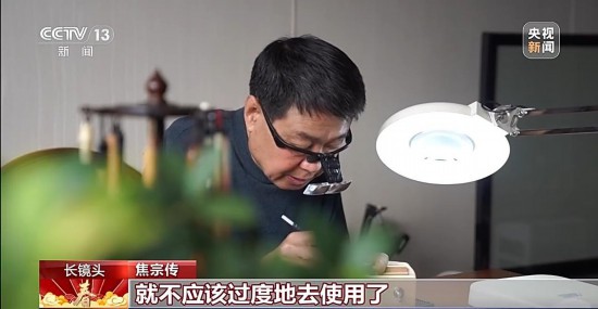 焦宗传:按医生的交代,就不应该过度地去使用了,用行家说就是节约点使用。但是干了这个项目,像做这么一个人物画大约得一天的时间,然后和本人沟通,成功了以后再刻,这一个篆刻大约得一天的时间。像我这个人也是个急性子,有的时候就是必须要一气干完。所以有的时候直接干到眼睛眼前一片模糊,那只能强制自己休息。