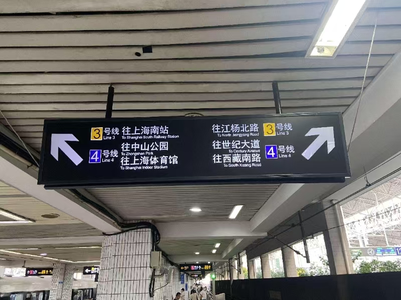 上海地铁“上海火车站”站的站内指示牌。人民网记者 龚莎摄