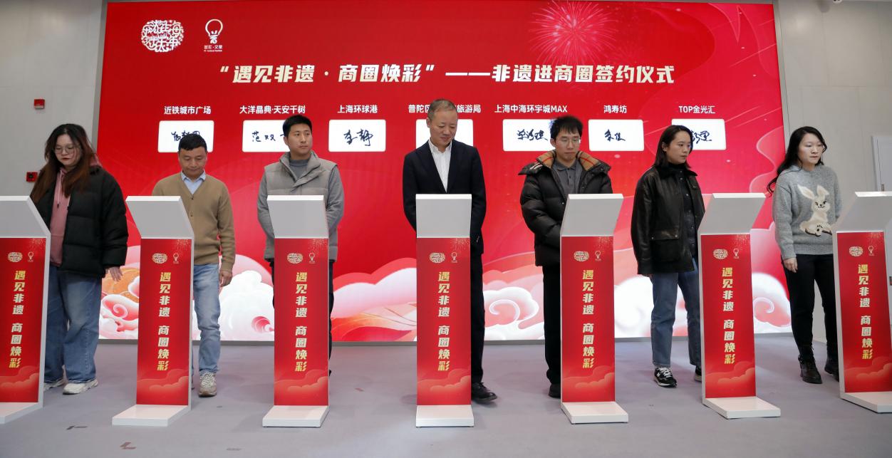 推动非遗破圈出圈,实现文化价值与市场价值双向提升,是本次活动的核心亮点。现场,普陀区文旅局与上海环球港、上海中海环宇城MAX 、大洋晶典·天安千树、鸿寿坊、近铁城市广场、TOP金光汇等核心商圈代表签署战略合作协议。未来,普陀区将以 “文商旅体展”深度融合为引领,系统性推进非遗常态化、主题化进驻各大商圈,打造集非遗展示、手作体验、文创市集、特色美食品鉴于一体的沉浸式文化消费新场景。通过将非遗新空间深度嵌入商业综合体,不仅能为市民游客提供可逛、可玩、可购的一站式体验,更将激活商业空间的文化内涵,构建以非遗为纽带、融合商业、旅游、体育、展览等多业态联动的消费新生态,实现社会效益与经济效益的统一。