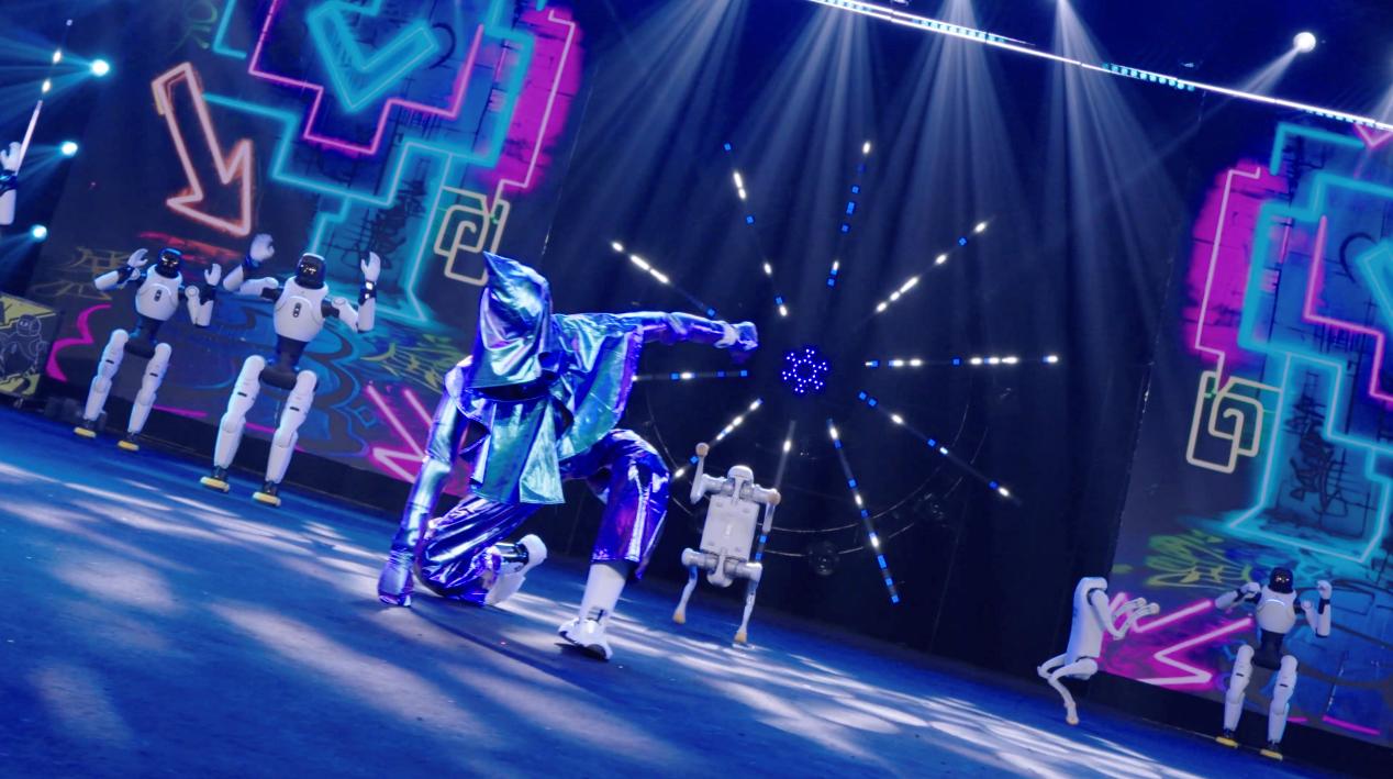 晚会推出了 12 个节目:开场舞《舞力全开》中,24 台灵犀X2凭精准群控技术实现动作零偏差,其中一台机器人还借威亚完成空中姿态展示;《武林大会》环节,数十台机器人复刻醉拳、火棍等传统武术招式;全球首个机器人魔术表演《超级变变变》中,嘉宾与灵犀X2、远征A2协作呈现虚实交织场景,充满新奇感和挑战乐趣。