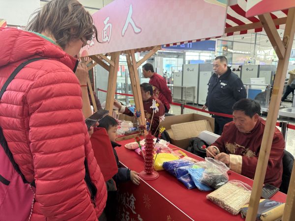 一位带娃来沪旅游过年的妈妈感慨:“没想到车站里还能让孩子体验捏面人,年味儿一下就浓了!”