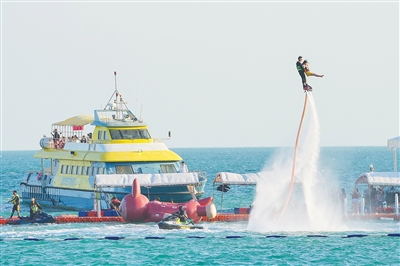 1月3日,游客在三亚大东海旅游区游玩,享受冬日里的椰风海韵。