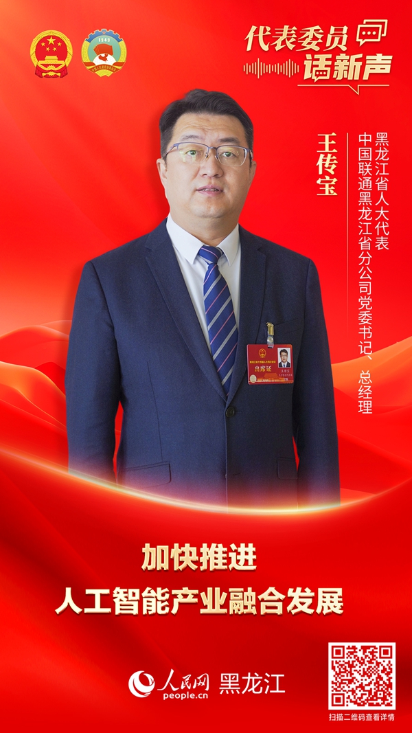 人民网哈尔滨1月31日电 (记者邹慧、张齐、张哲鑫)“从场景融合、生态构建、人才支撑、政策保障四个维度发力,推动人工智能产业高质量发展。”黑龙江省人大代表,中国联通黑龙江省分公司党委书记、总经理王传宝建议,加快推进黑龙江省人工智能与产业深度融合。