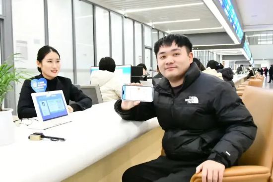 在日照市行政审批服务大厅,工作人员依托“一人一档、一企一档”数据库,为企业办理电子营业执照。
