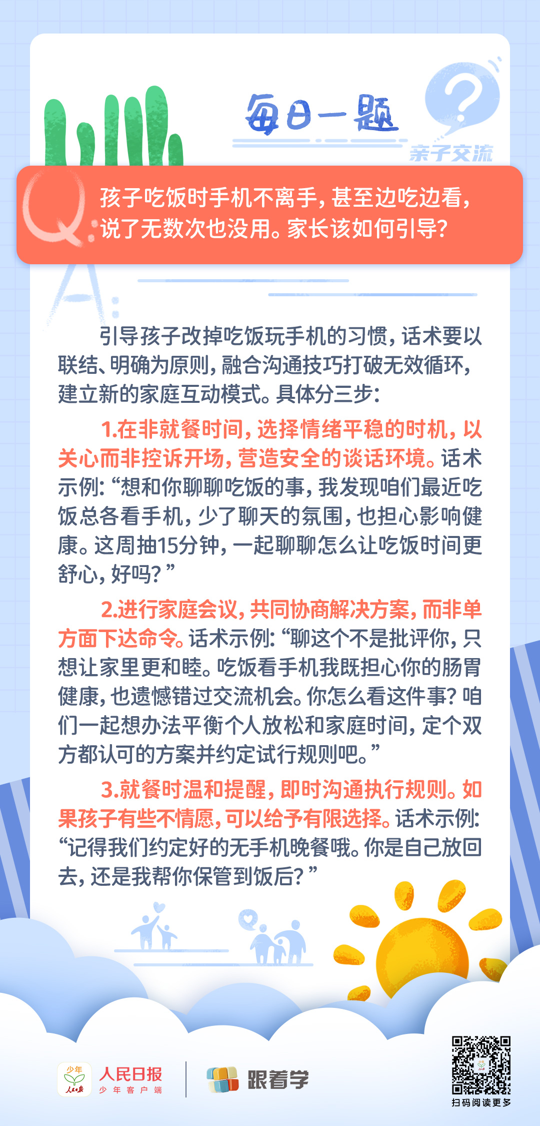 每日一题丨孩子吃饭玩手机屡教不改,该如何引
