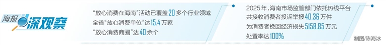 “接诉即办、快办快结”。基于这一原则,2025年,海南市场监管部门依托12315、12345热线平台,共接收消费者投诉举报40.36万件,为消费者挽回经济损失5158.85万元,处置率达100%。