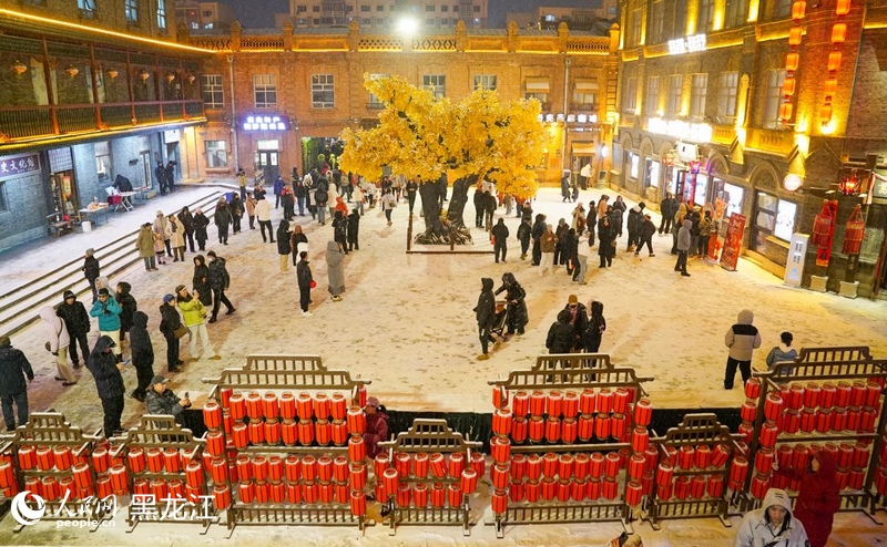 哈尔滨中华巴洛克历史文化街区元宵节民俗活动吸引游客打卡。人民网记者 苏靖刚摄