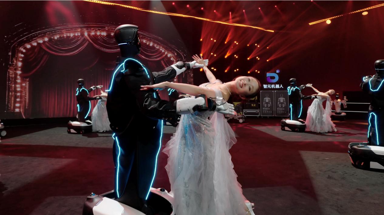 语言类节目《替身约会》中,多台机器人与开心麻花演员同台幽默探讨“机器人的爱情”;仿生机器人“精灵・璇”在《未定义的关系》中,以科技质感声线演绎原创歌曲;《算法华尔兹》里,精灵 G2则演绎“钢铁柔情”,与人类舞者共跳优雅双人舞,打破工业机器人的“冰冷标签”。