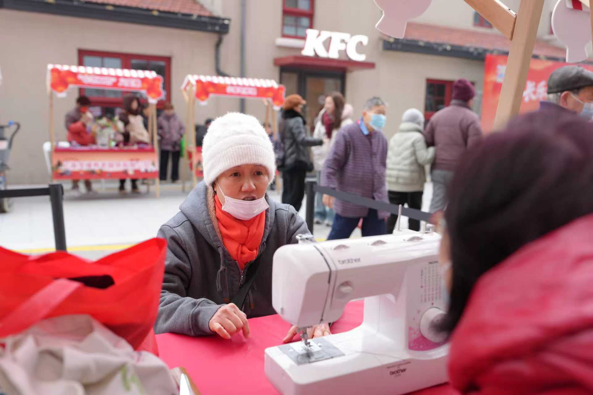 市集现场,老中青志愿者忙碌的身影随处可见,处处彰显着对老年群体的细致关怀。街道老年协会志愿者带来免费理发、衣物缝补、小家电维修等“接地气”服务;社区卫生服务中心、日月星护理院设摊义诊,提供健康问诊、血糖检测等公益服务,切实解决老人日常健康需求。