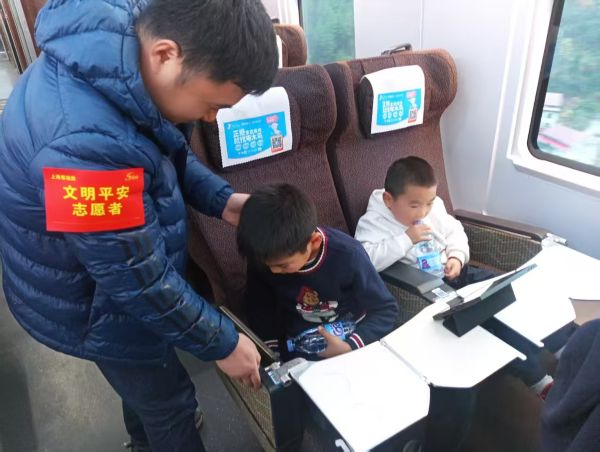 在上海至北京、昆明、西安、广州、重庆等热门线路的24趟列车上,他们提供志愿服务。