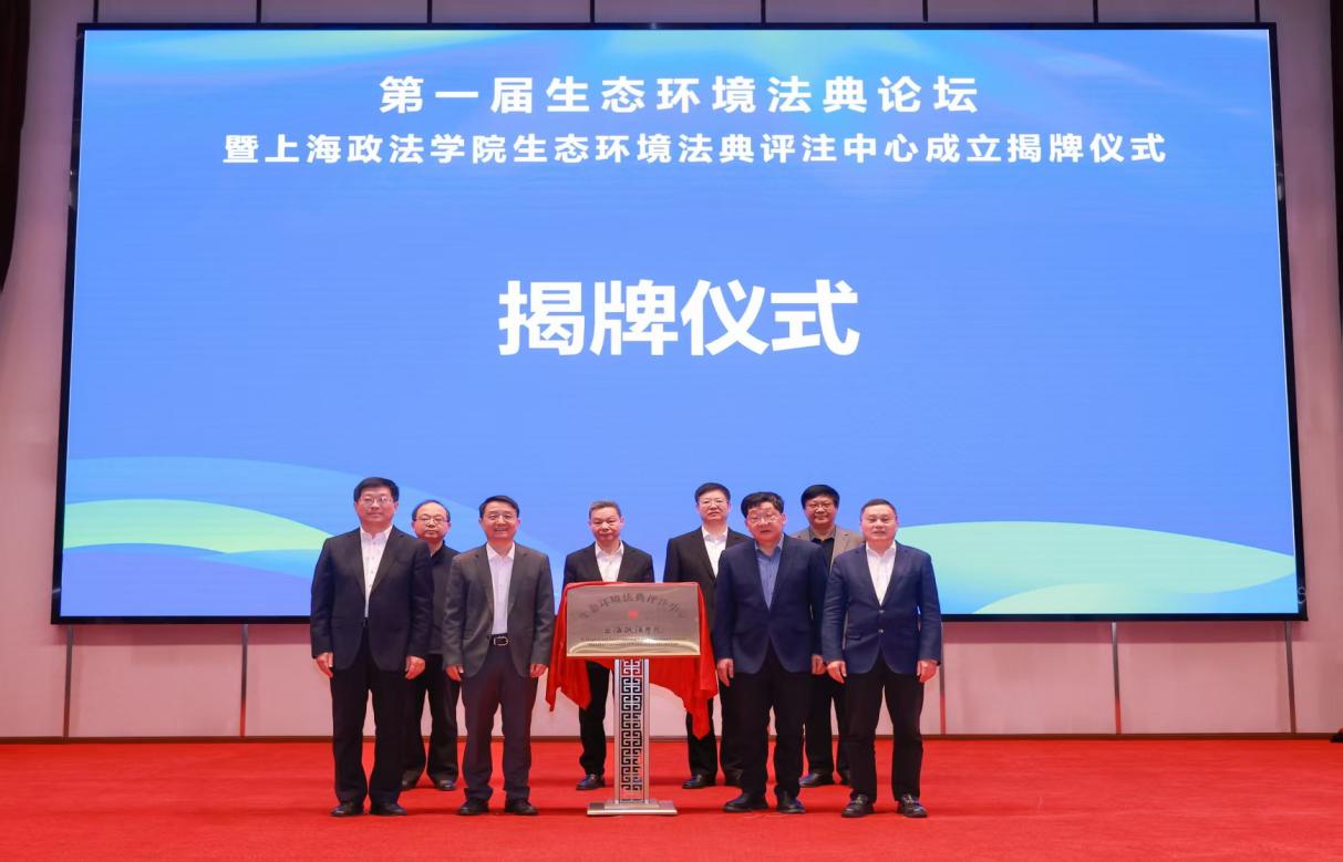 上海市司法局党委委员、副局长刘言浩,上海市生态环境局党组成员、副局长余飞麟,上海政法学院党委书记葛卫华,上海政法学院校长郑少华共同为“上海政法学院生态环境法典评注中心”揭牌。