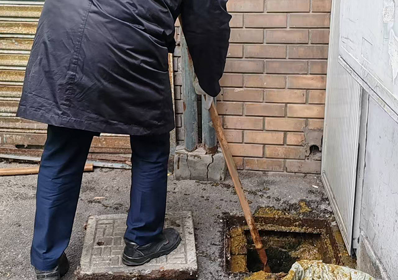 物业工作人员在疏通淤堵的下水道。受访居民区供图