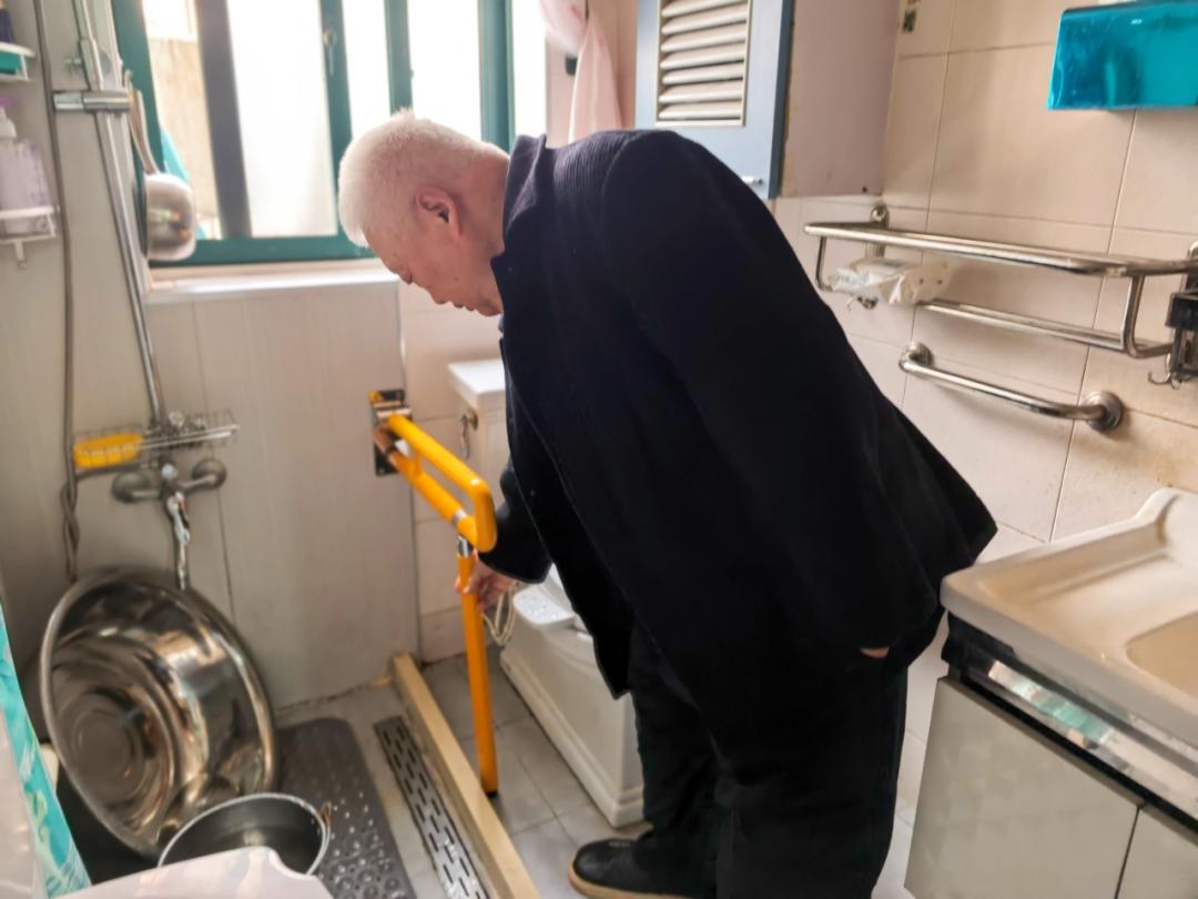 冯老伯家的卫生间装上了扶手
