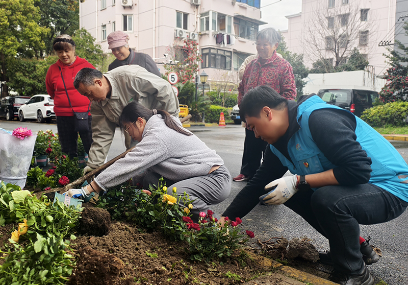 如今,小区入口的荒废处已经变成了居民共治家园。走进新泾六村,满园春色扑面而来,引得过往居民连连点赞。