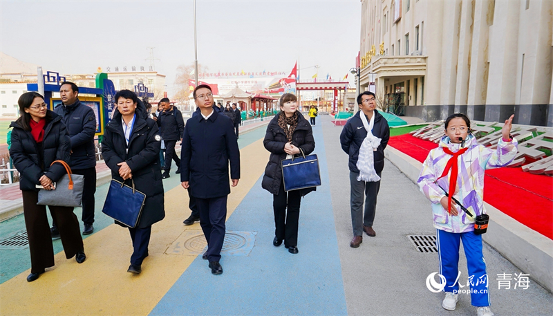 嘉宾走访尖扎县民族团结红军小学。人民网记者 况玉摄