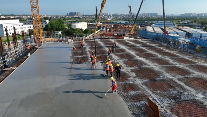 在超大规模作业面施工阶段,项目团队创新实施“分区流水、平行作业”管理模式,将2.4公里战线划分为九大作业片区,逐步构建施工队伍协同机制与材料精准配送体系,并通过每日精准调度会和“立体穿插施工法”,高峰期在狭长空间内有序指挥5000余名建设者、400余台大型机械协同作战,将“不可能”变为“可能”,创下了月产值连续9个月破亿、最高超2亿元的施工纪录。