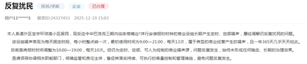 “中华巴洛克三期内临街商铺安装的报时时钟长期产生定时、定频噪声,屡经调解仍反复扰民。”近日,有网民通过人民网“领导留言板”诉说了自己的困扰。