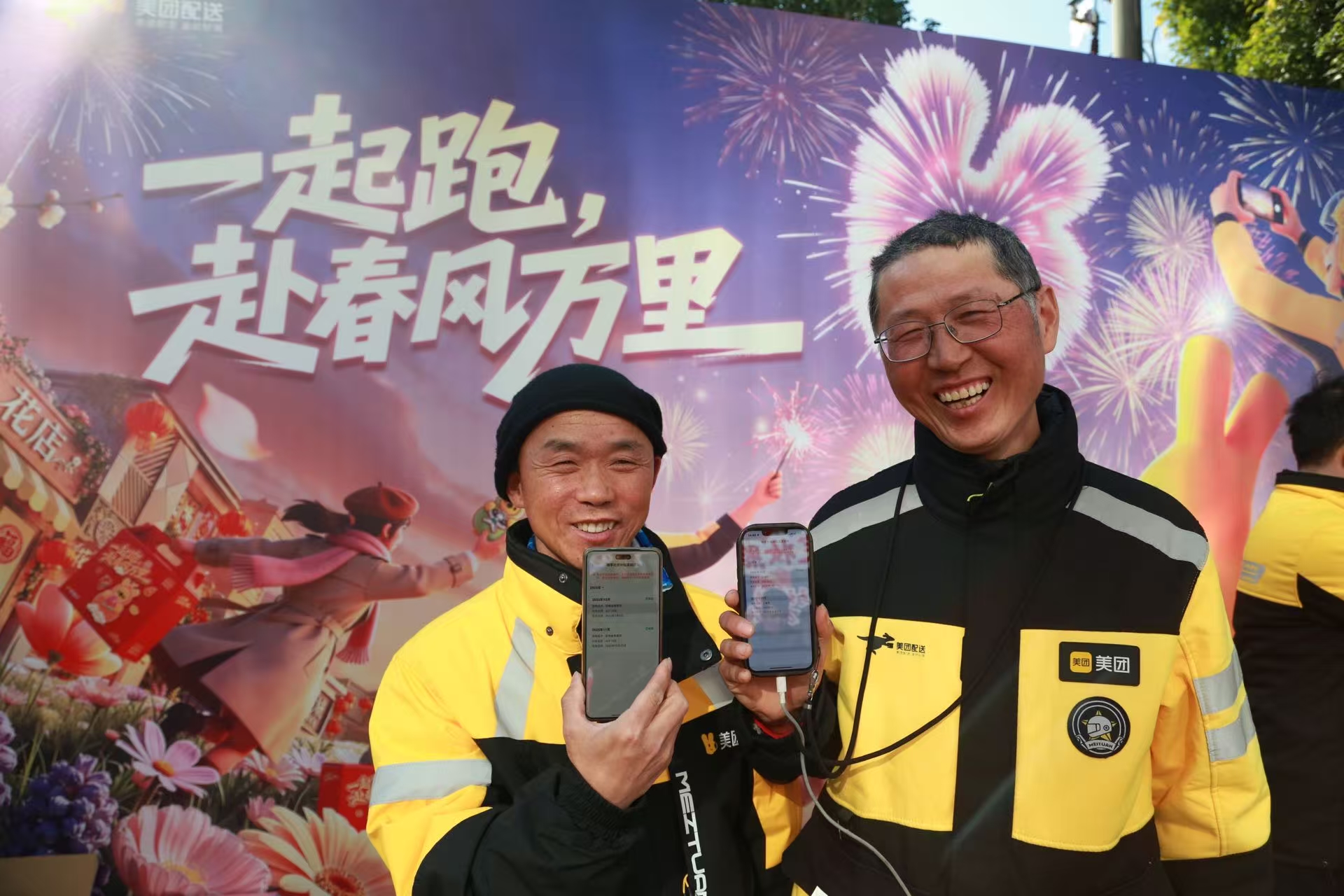 在休息区泡好面的骑手谭五凑上来,也瞄了眼自己的手机,“431块!新年第一笔社保补贴到账!”