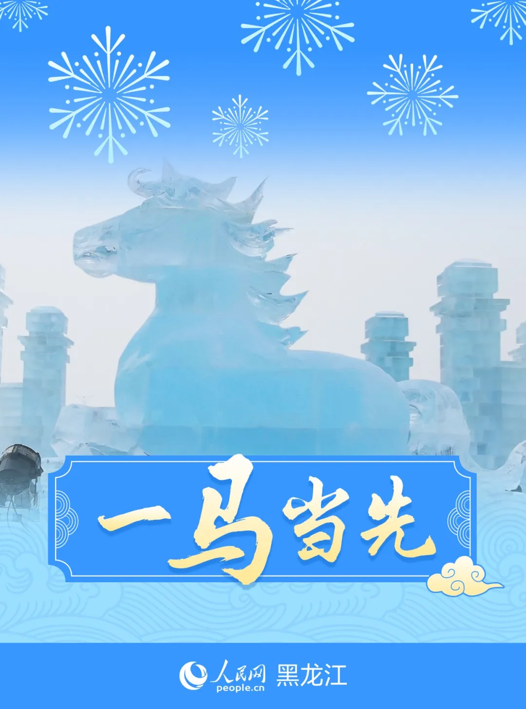 冰雕雪雕的骏马踏雪而来